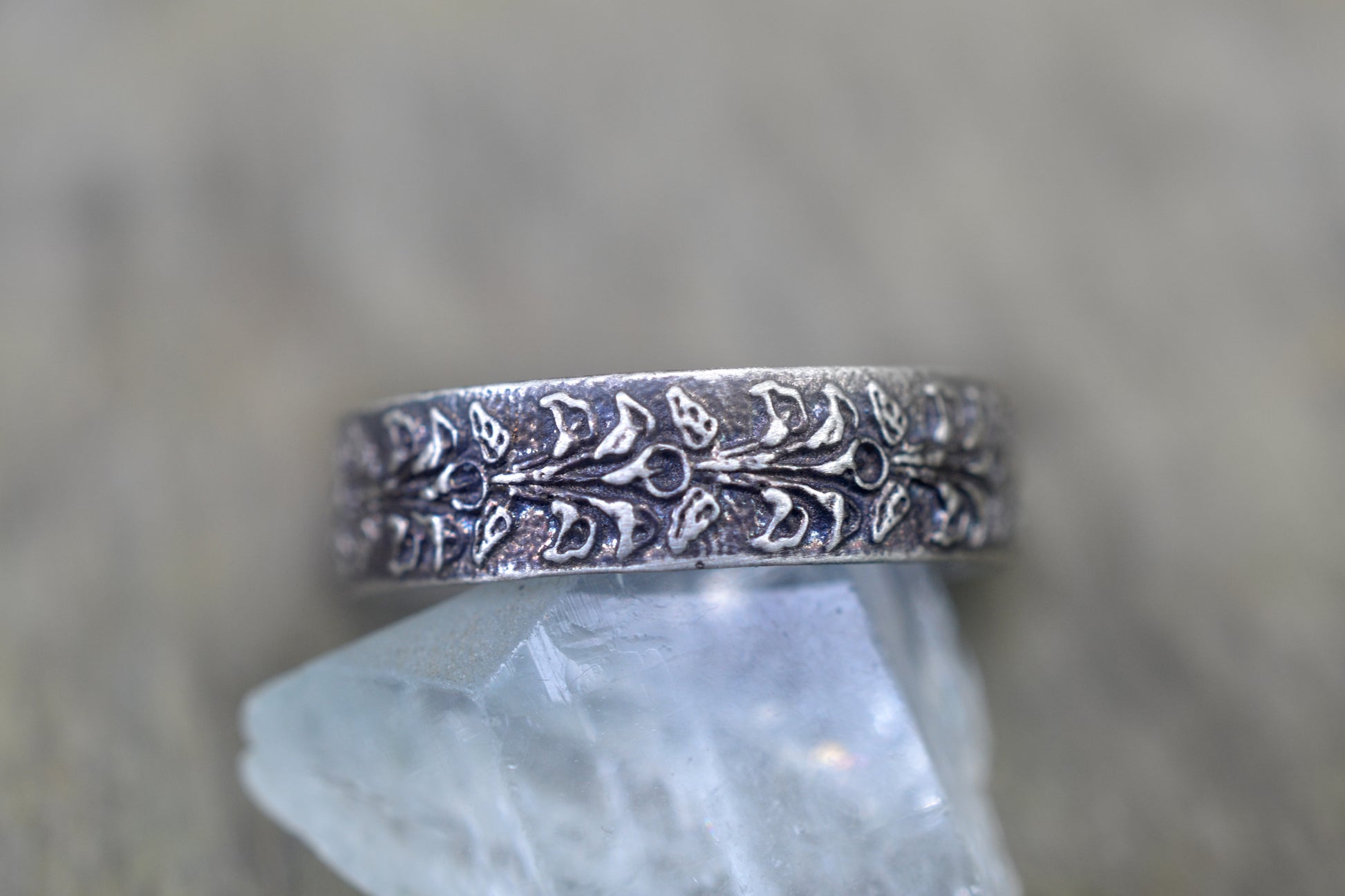Calla Lily Wedding Band, Oxidised Silver Art Nouveau Style Jewellery